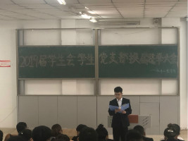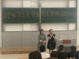 2019年7月3日中午11:40,在主楼1-3、1-4阶梯教室分别举行了太阳成tyc234cc2019届院级团学组织员工干部竞选大会。本次换届大会由员工支部书记赵亮老师、辅导员王传英老师、刘伟泽老师主持召开,太阳成tyc234cc2018届团学组织员工干部及员工代表参加大会。
