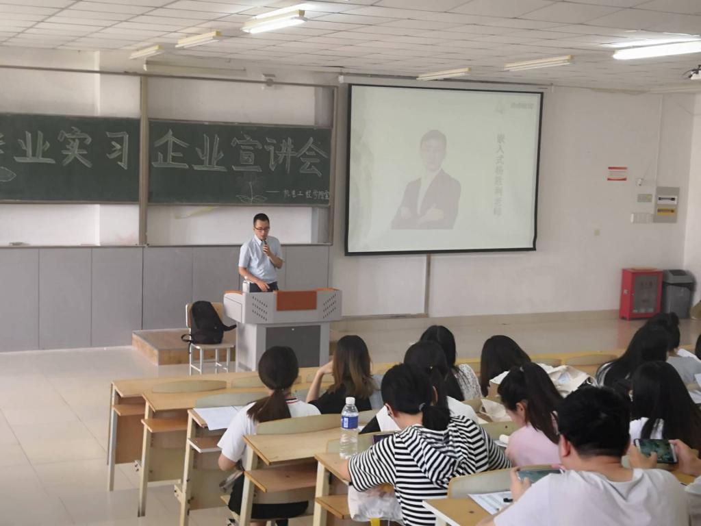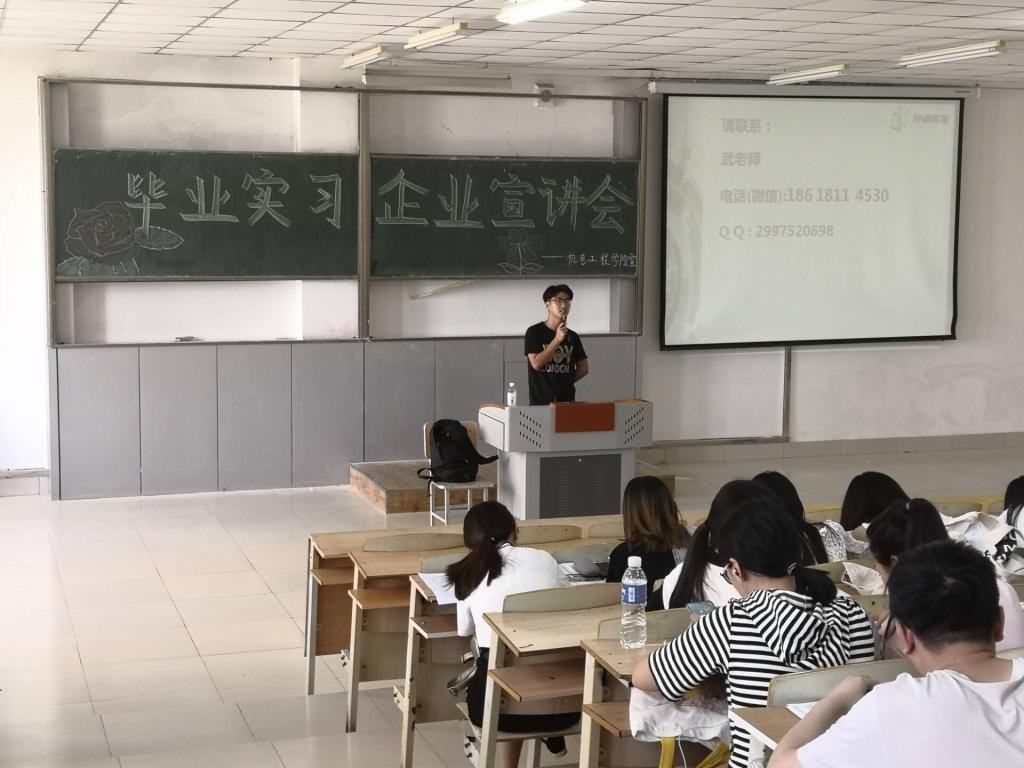宣讲会伊始,刘永皓经理和崔峰老师就毕业实习事宜进行了动员。随后企业代表就实习待遇、实习要求等进行了详细说明,并对其公司教学特色、学习与生活环境、专业前景进行了详细介绍。最后,王传英老师对宣讲会进行了总结,鼓励所有同学要坚持不懈地朝着自己的梦想努力。