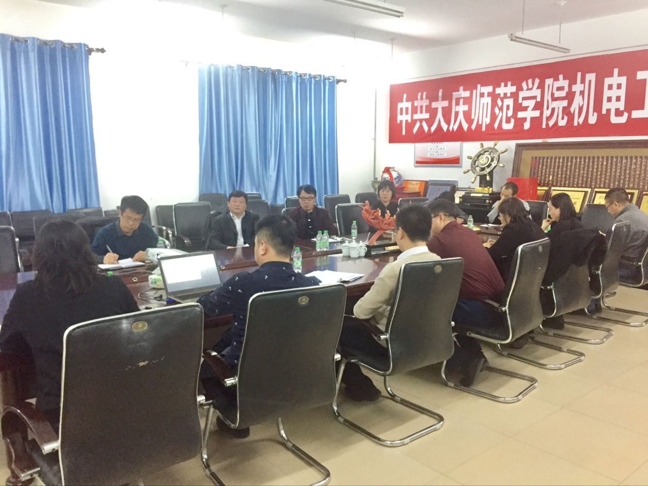 为巩固审核评估结果,推进教育综合改革,有效提高教学质量。2018年11月7日,纪委书记滕强、教务处处长徐权、副处长张国发一行到太阳成tyc234cc电子信息工程系检查指导教研活动,太阳成tyc234cc经理刘永皓、经理助理成宝芝、中兴通讯派驻公司项目经理赵晓春及电子信息工程系、企业方教师参加了教研活动。