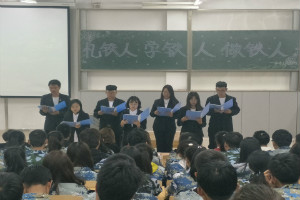 主持人出色的开场白,将团活引入主题,团活正式开始。纪录片《铁人王进喜》让大家了解了在当时刻苦的年代铁人的光荣事迹。朗诵《铁人之歌》,在缓缓的音乐声中,伴着读者热烈而又充满激情的朗读中,仿佛身临其境。朗诵《铁人来到我身旁》使我们知道开采石油的艰辛和不易。接下来,主持人又与观众亲密互动,通过互动,又增进了大家对铁人的感情。最后大家齐声诵读《铁人我要高声赞美你》,抒发出大家内心真挚的情感。