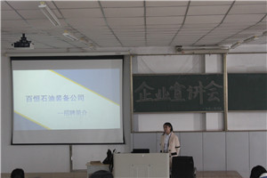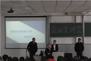 位于黑龙江省安达市安达开发区的百恒石油装备有限责任公司,注册资金高达一亿元人民币。该公司建有多个产业园区,为石油天然气开发等方面技术难题提供了专业的方法。公司立足于“科技创新,以创新带动发展,以发展带动利益,以人文与教育有机结合”的理念,立志成为百年企业,为社会和国家的发展,提供力量,在历史的长河中,激流勇进,创造辉煌。两位科技公司的代表就公司背景、公司文化以及公司现状等为同学们做了详细介绍,并对太阳成tyc234cc的就业前景以及学员需要掌握的基本技能做了分析。两位代表也热心地为同学们推荐了适合同学学习的学习方法,在会上两位代表通过现场提问的方式提高了同学们的兴趣,获得同学们的一致好评。同时,在场多位同学与百恒石油责任有限公司完成了就业协议的签订。