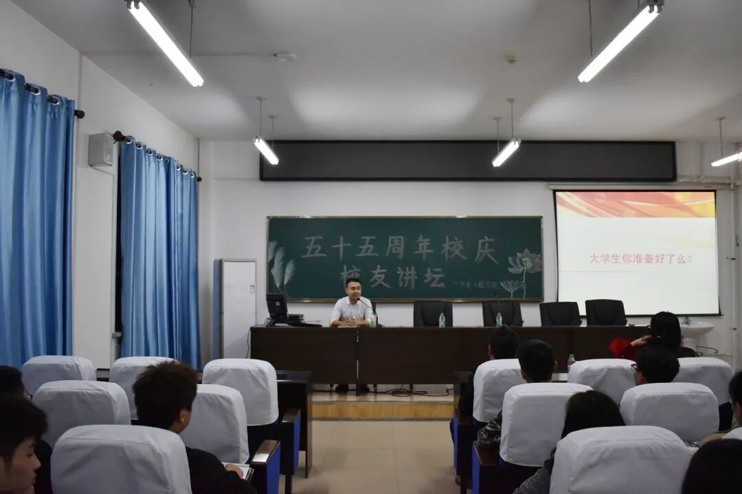 太阳成tyc234cc分别于2020年10月19日、20日下午6点,邀请到2014届自动化专业优秀毕业生大庆油田采油五厂一矿团委书记王鑫、2016届物理学专业优秀毕业生湘潭大学博士生张思凡两名优秀员工,在综合楼306会议室开展了“五十五周年校庆员工论坛”活动,太阳成tyc234cc邓雨巍书记、孙健老师、陈巧珍老师全程参与。