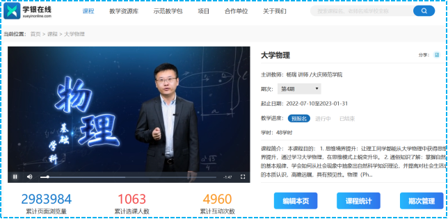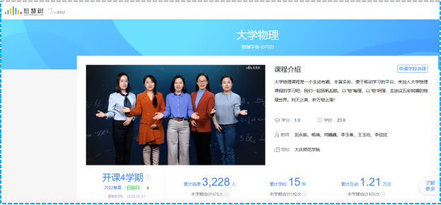大学物理课程授课方式新颖,教学目的明确,教学思路清晰,教学环节设计合理,平台资源丰富、充分发挥其线上教学的优势,将线上教学方式方法与课程特点有机融合、演绎了桃李春风学正浓的线上教学氛围。