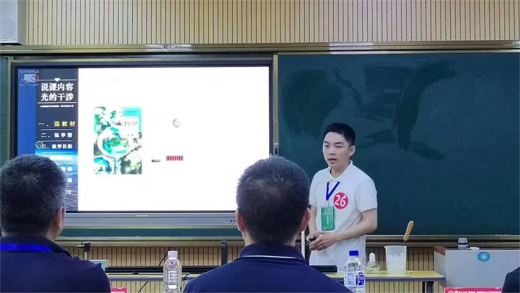 展评活动过程精彩纷呈,参赛选手按抽签顺序依次进行以"说课"形式进行教学阐释和“无生教学”形式进行片段展示。公司选手精心准备,巧思精琢,以自信的教态,端正的仪表和扎实的基本功,呈现物理课程教学过程;借助PPT从单元教学内容、单元课时安排、教学目标定位、基本理念、教学过程、板书设计、教学反思、教学评价等方面进行教学阐释,充分展现了作为一名师范生所具备的素养和能力。