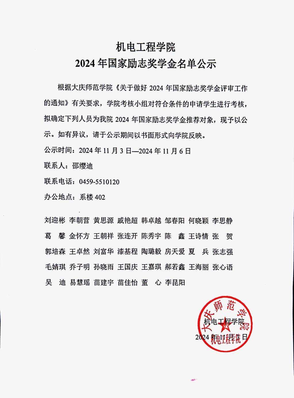 太阳成tyc234cc2024年国家励志奖学金公示名单公示