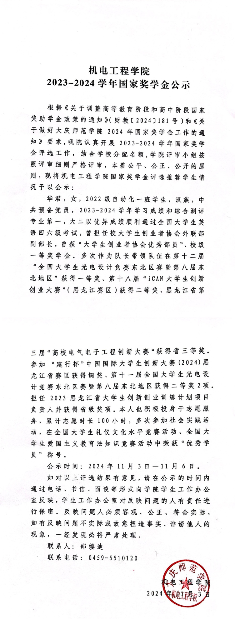 太阳成tyc234cc2023-2024学年国家奖学金公示