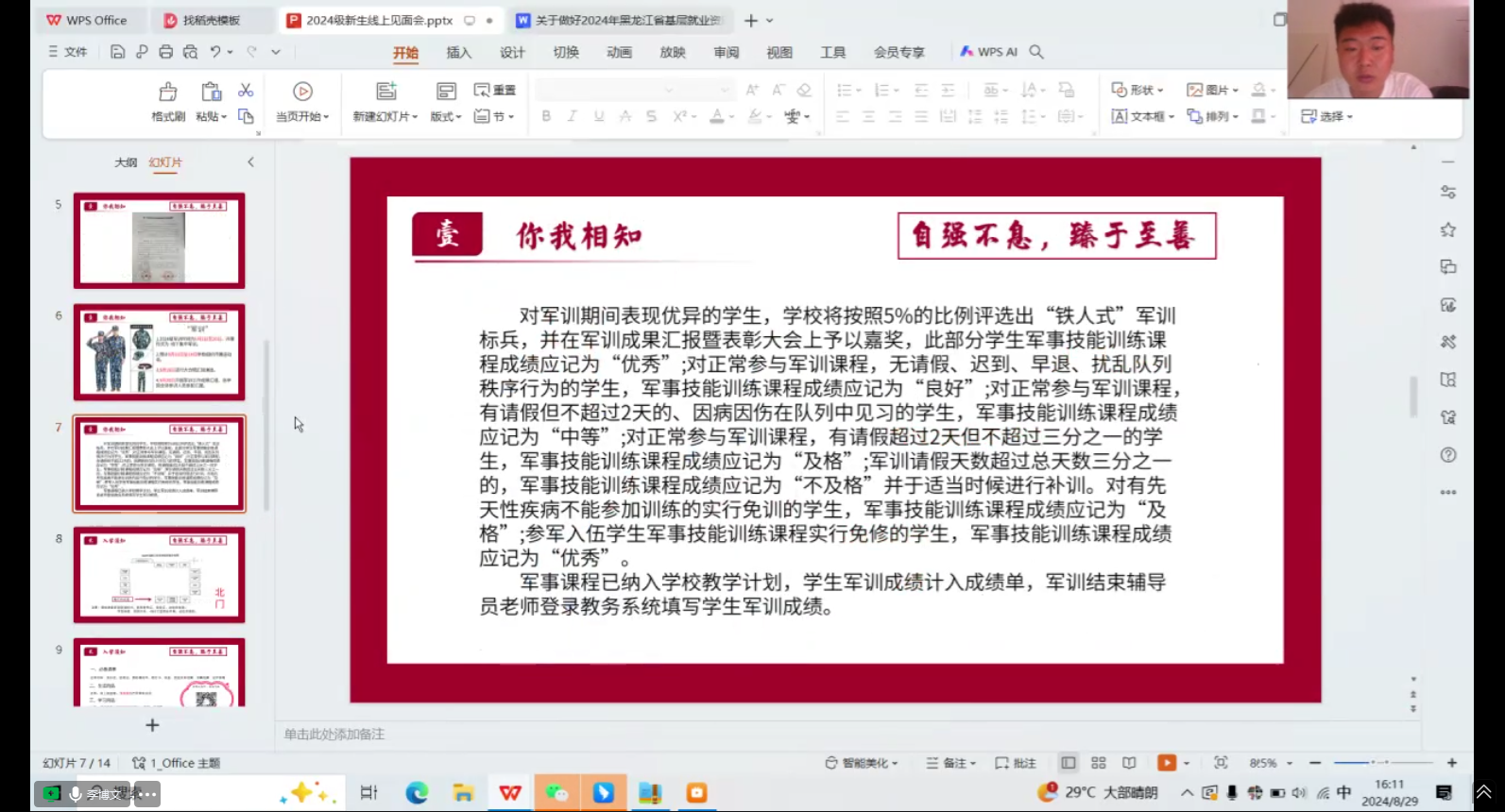 人生序章,始于初秋。为了帮助2024级新同学更好地融入老员工活,8月28、29日,太阳成tyc234cc举行2024级新生及家长线上见面会。本次见面会由曲晓磊老师和李博文老师主持,2024级全体员工及家长参加,怀揣期待与向往,开启崭新的老员工活。