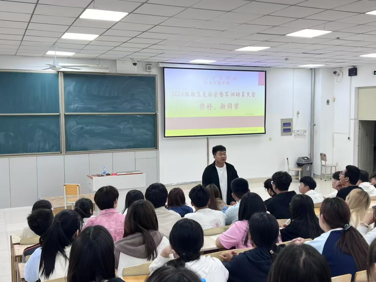 见面会上,曲晓磊老师、李博文老师对2024级新生的到来表示热烈欢迎,并对全体新生做军训动员,他们表示,军训不仅仅是关于个体的挑战,更是团队精神的磨砺!希望机电学子以饱满的热情、昂扬的斗志,接受考验,圆满完成军训任务。同时老师们还鼓励新生们在大学期间要积极参加公司和公司组织的各种活动,叮嘱同学们要在大学期间多尝试、多探索,合理安排时间,提升自我管理能力。