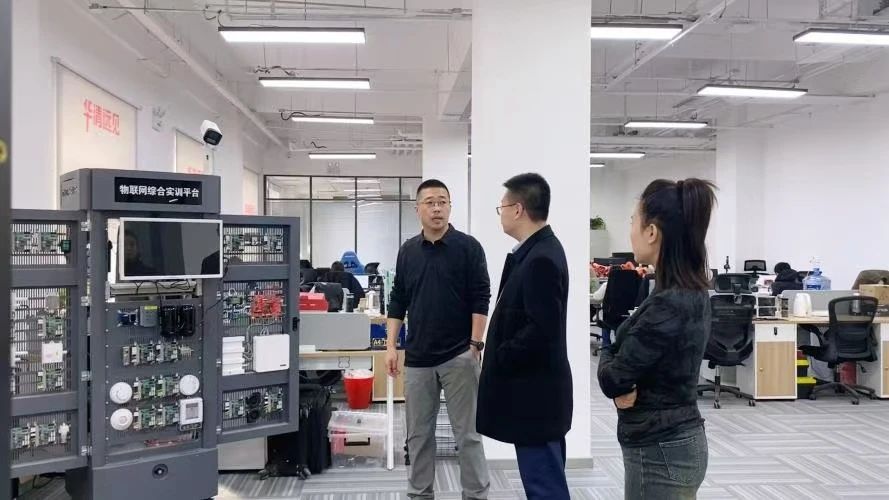 刘永皓经理在该公司翟总经理和史经理的引领下,参观了公司的办公环境和教学设施。对方详细介绍了企业基本情况、业务范围以及员工职业发展等问题,并表达了围绕校企协同育人模式构建校企融合发展共同体的期望,同时就深化校企合作模式与路径、推进人才培养质量提升、实现多方共赢等话题展开交流。