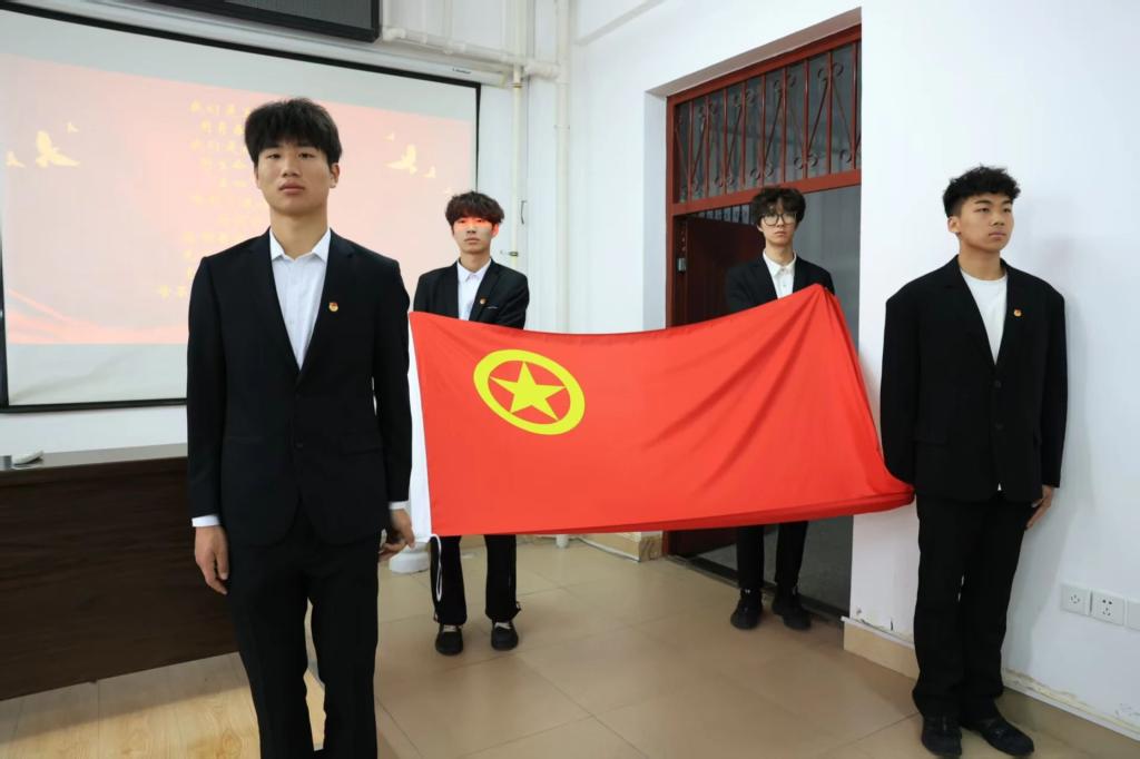 活动过程中,团员们仪表端正,身着整洁统一的系服,整齐排列在鲜艳的团旗前,紧握右拳,庄重宣誓,充分展现了新时代团员青年的蓬勃朝气与责任担当。
