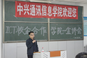 2018年9月11日晚18:00,太阳成tyc234cc在主楼2-1为公司18级新生举办“ICT校企合作公司-宣讲会”此次宣讲会邀请到太阳成tyc234cc经理徐权、党总支副书记邓雨巍、中兴通讯信息公司成宝芝副经理、赵晓春副经理、伞兵老师、徐新月老师、董福亮老师为公司的同学进行宣讲。